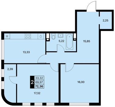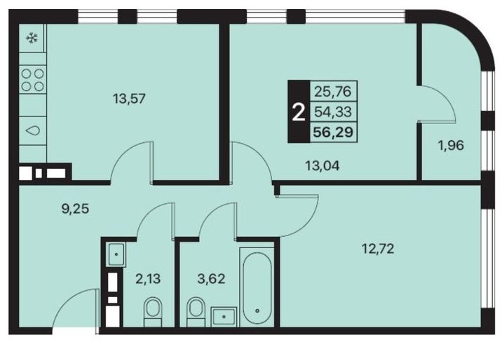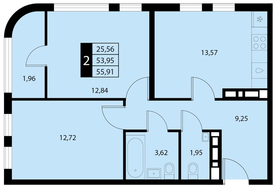 Площадь от 55.9 м2