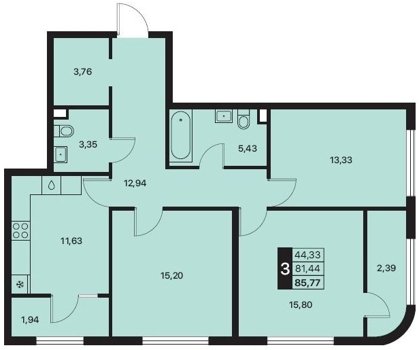 Площадь от 84.5 м2