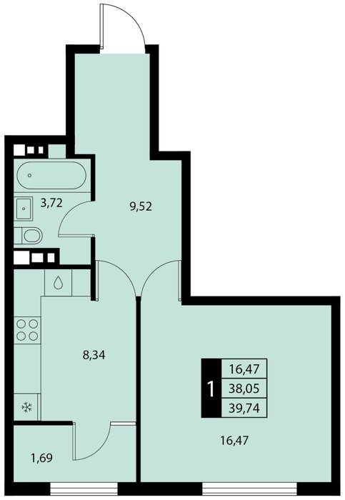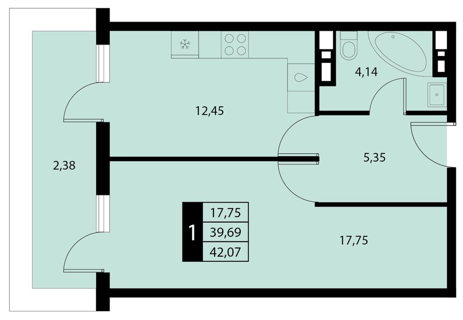 Площадь от 35.9 м2